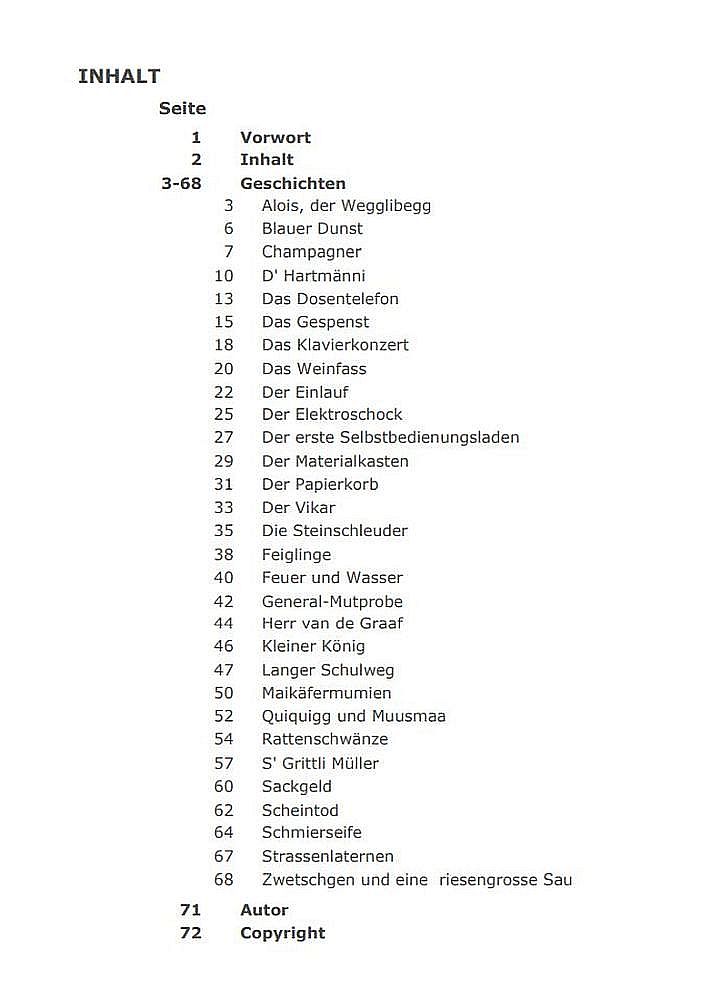 Die Erzählungen sind aus den Erinnerungen eines Halbwüchsigen bewusst auf eine etwas «holperige» Art geschriebene lustige «Lausbubengeschichten».